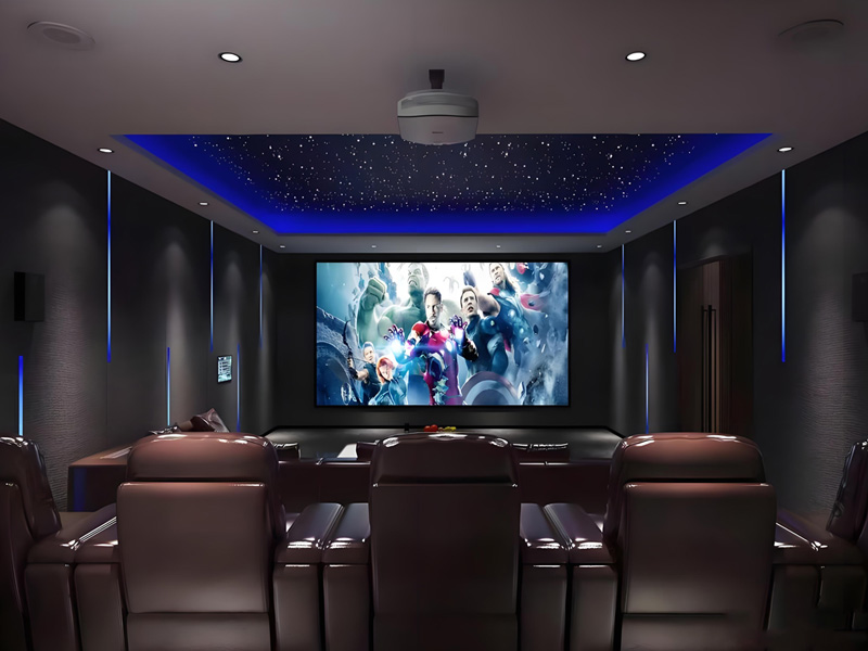 别墅私人影院系统是集高清视听、智能控制与声学优化于一体的家庭娱乐解决方案,能为业主打造媲美商业影院的沉浸式体验。其核心构成包括: 1. 高清视听系统:采用4K/8K激光投影仪搭配抗光幕布,确保画面清晰、色彩饱满;音响系统支持杜比全景声、DTS:X等环绕声技术,通过前置、环绕、顶置等多声道布局,实现声音的精准定位与动态追踪。 2. 智能控制系统:集成灯光、窗帘、影音设备于一体,支持手机APP、语音助手或触摸屏控制,可一键切换观影、K歌、游戏等场景模式,简化操作流程。 3. 声学优化设计:通过隔音材料、吸音板与扩散体的组合,减少回声与外界干扰,确保声音纯净;同时,根据别墅空间特点进行声场调校,使每个座位都能获得均衡的听音效果。 此外,别墅私人影院系统还注重个性化定制,可根据业主需求融入吧台、游戏区等多元功能,提升空间利用率与娱乐体验。