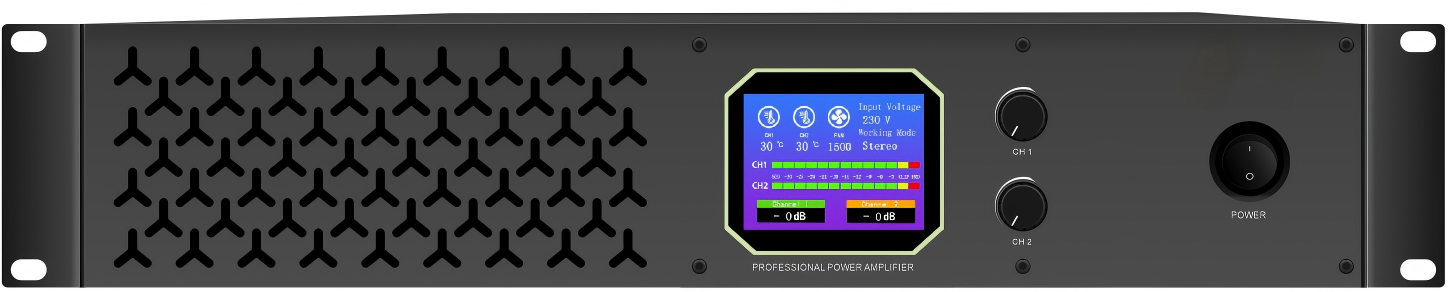 ▲面板带有2.8寸TF彩色屏幕 ,显示功放状态一目了然。