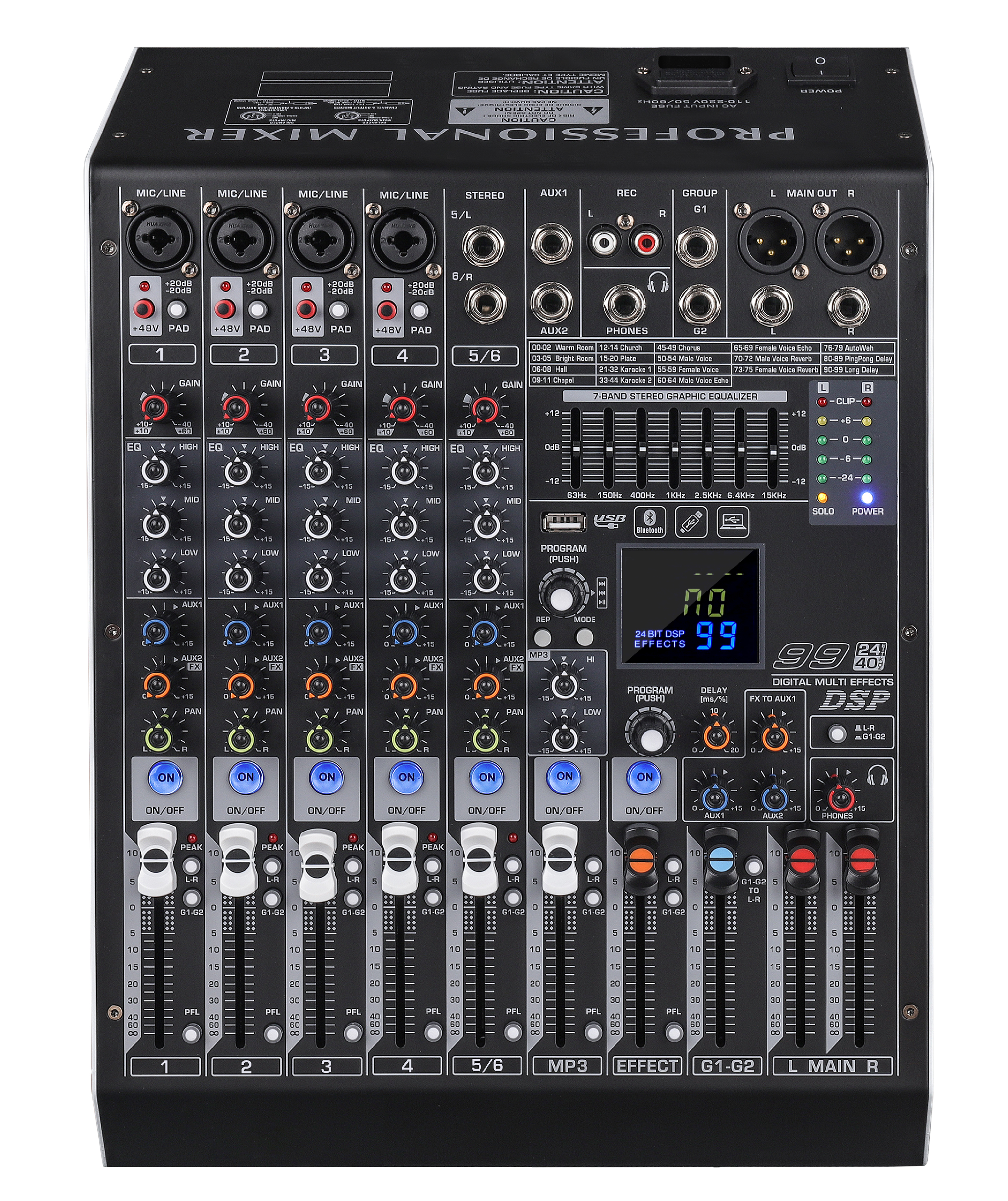 单99种DSP数字混响效果,延时可自定义