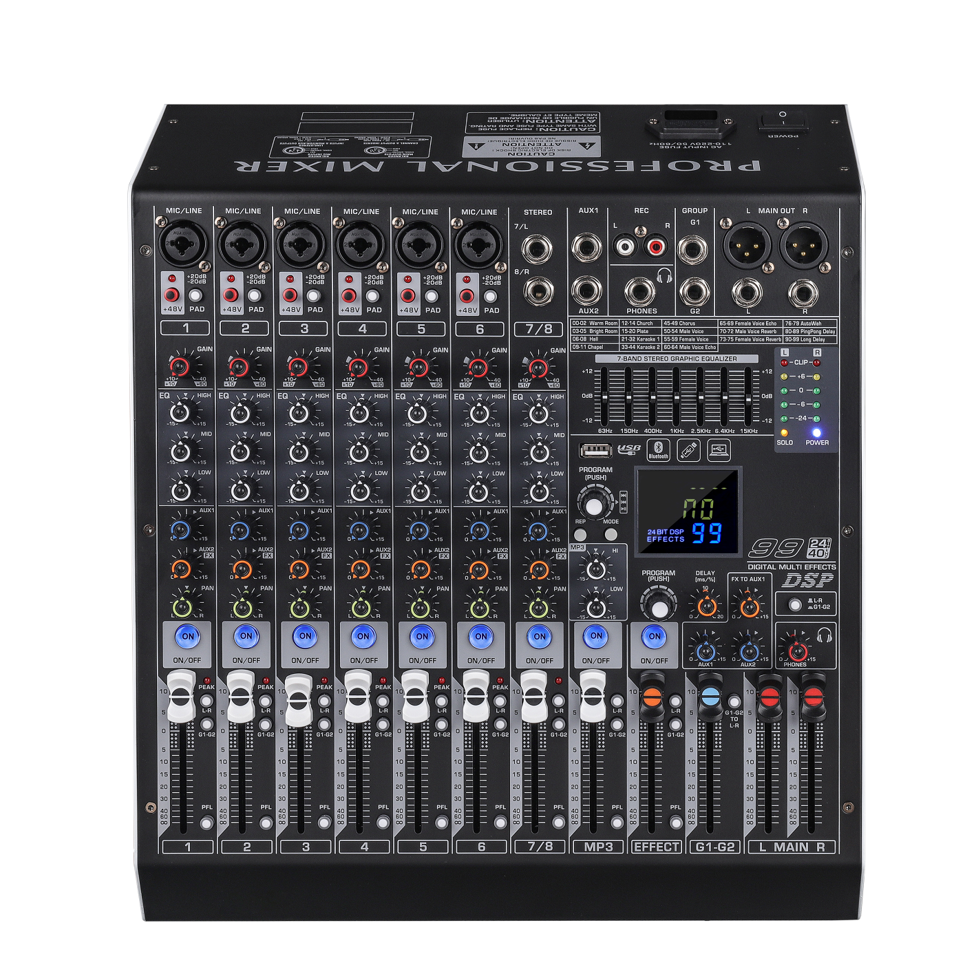 单通道独立48V幻象电源 .七段均衡 . 内置电源开关 .60行程推子控制