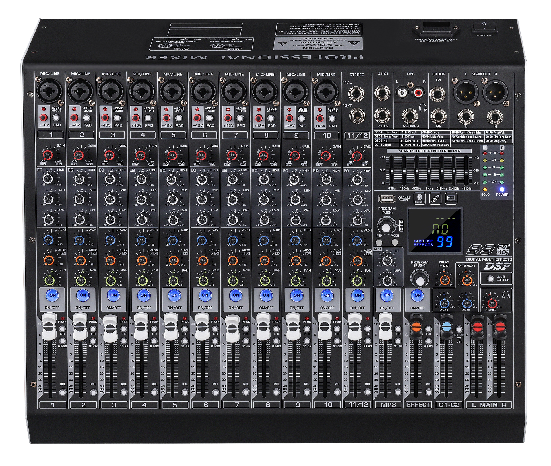 单通道独立48V幻象电源 .七段均衡 . 内置电源开关 .60行程推子控制