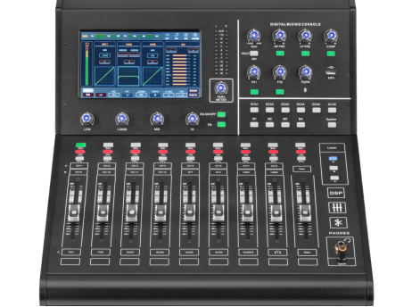 •输入内置噪声门,压限器,高低通,4段参量均衡,延时,相位,输通道声像平衡调节