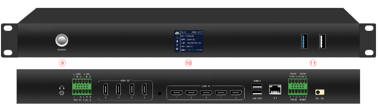11.主机支持通过USB 连接触摸大屏实现大屏触控操作录播主机功能。